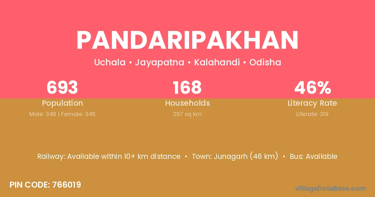 Pandaripakhan village has a total population of 693 people, of which 348 are males and 345 are females.