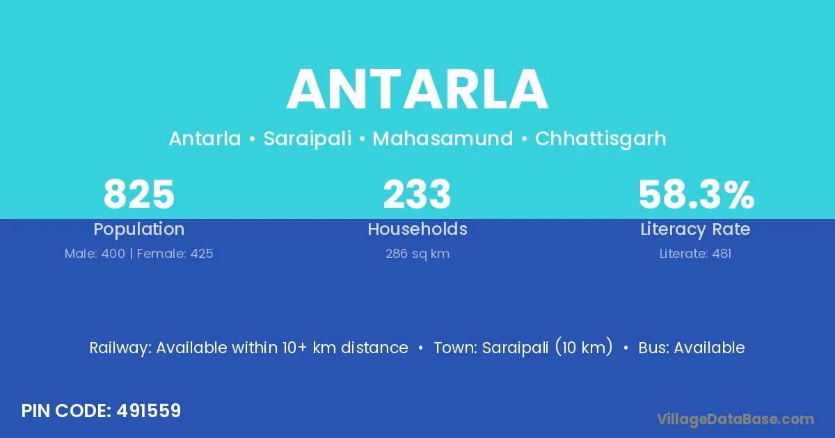 According to Census 2011 information, the village code of Antarla village is 766023.
