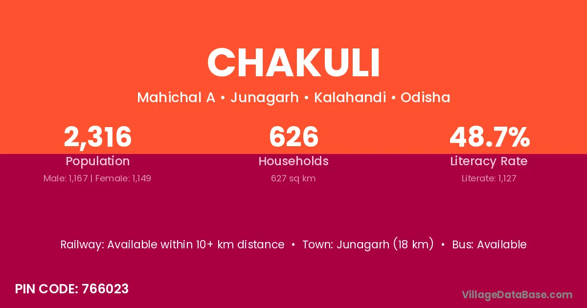 There are approximately 626 households in Chakuli village.