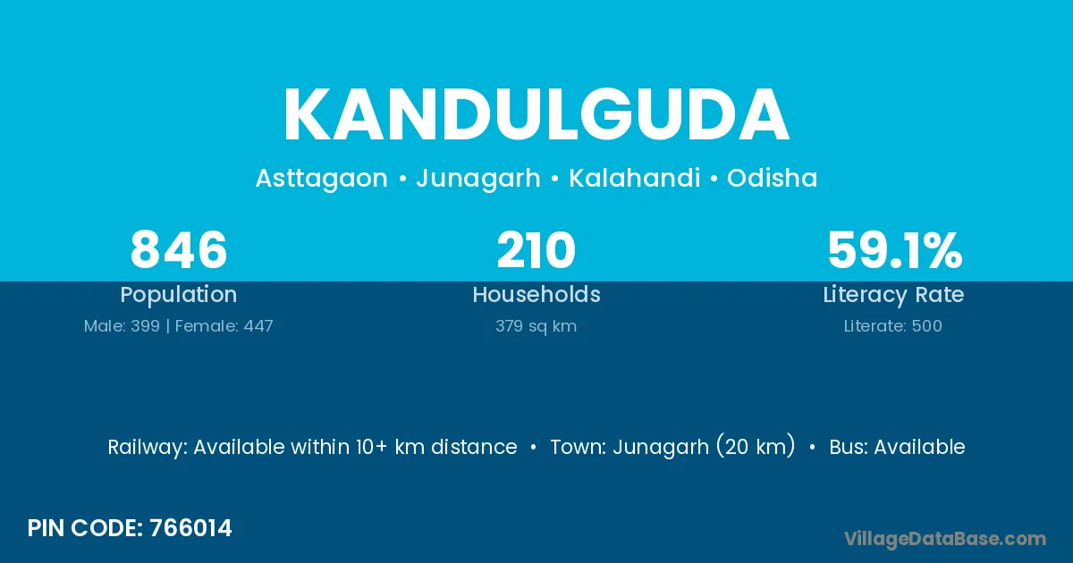 Kandulguda village is located in the Junagarh Tehsil of the Kalahandi district in Odisha .