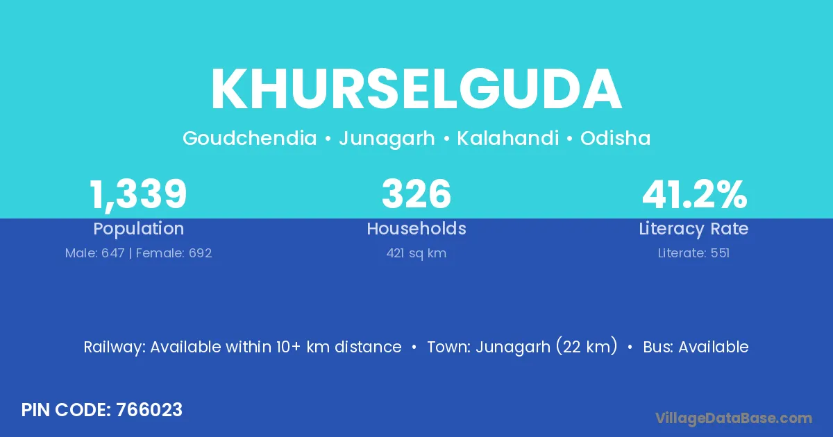 Junagarh (22 km) is the nearest town to Khurselguda village for major economic activities and is located approximately 22 km away.