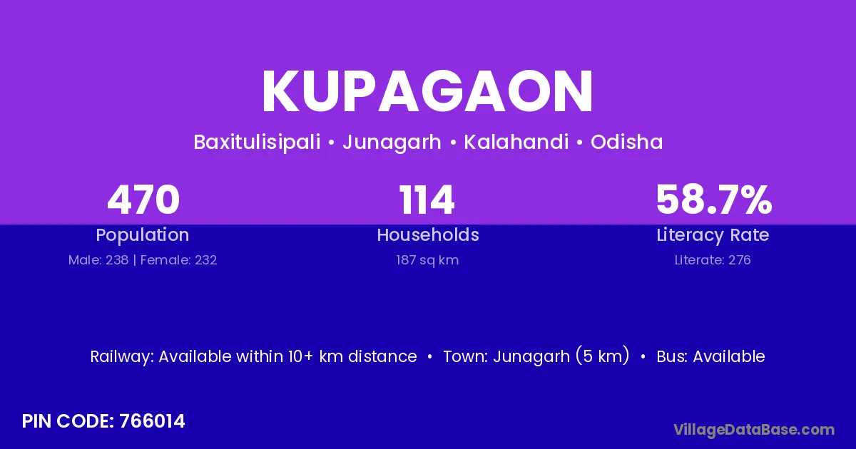 Kupagaon village is located in the Junagarh Tehsil of the Kalahandi district in Odisha .