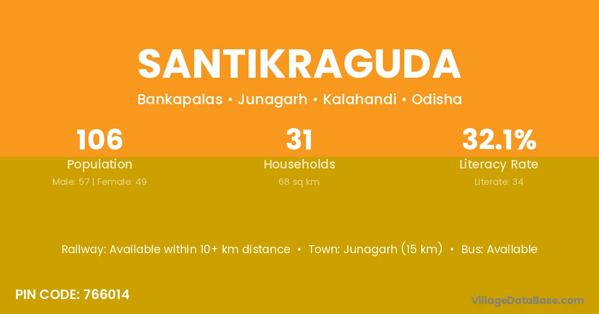 Santikraguda village has a total population of 106 people, of which 57 are males and 49 are females.