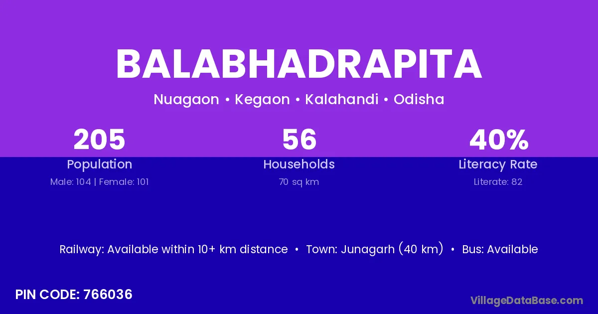 Junagarh (40 km) is the nearest town to Balabhadrapita village for major economic activities and is located approximately 40 km away.
