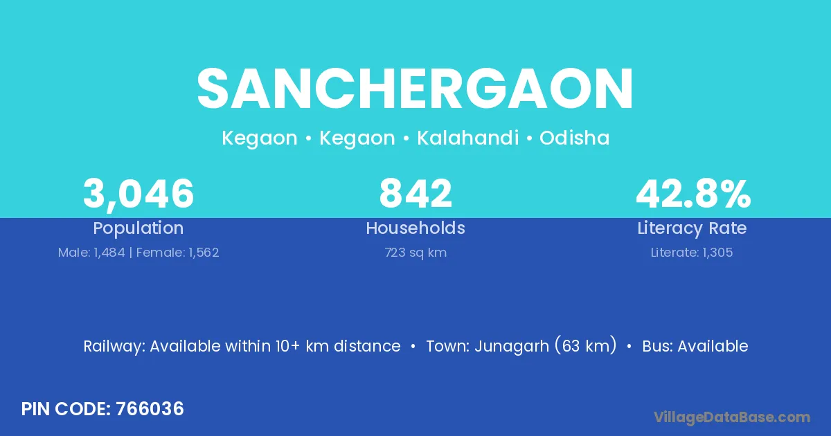 Sanchergaon village is located in the Kegaon Tehsil of the Kalahandi district in Odisha .