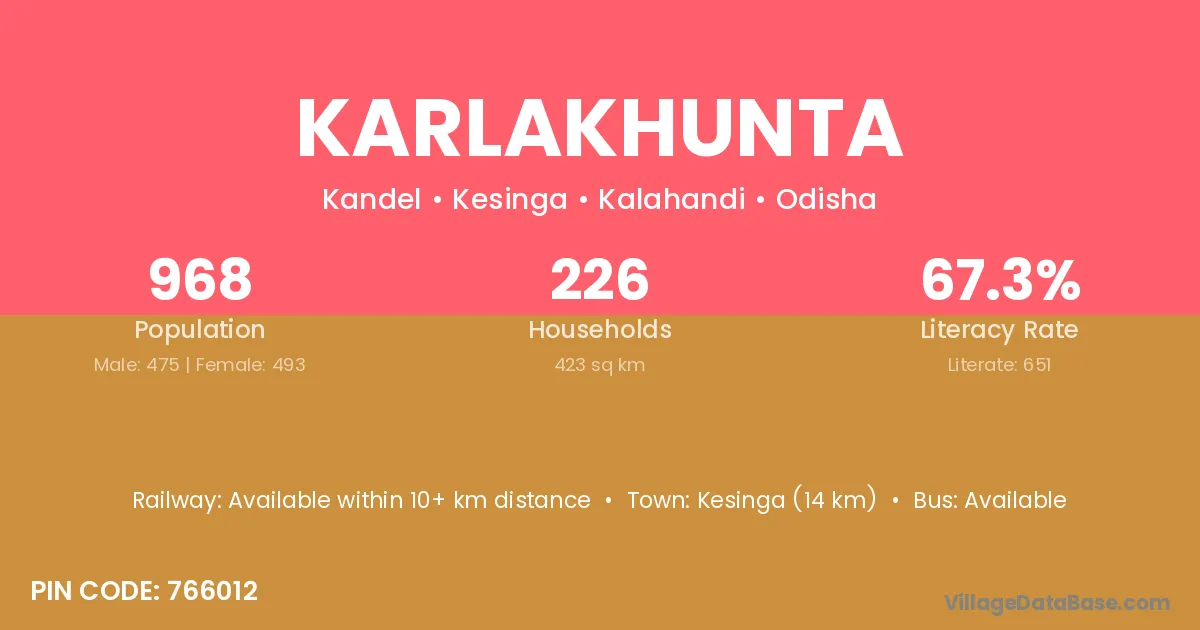Kesinga (14 km) is the nearest town to Karlakhunta village for major economic activities and is located approximately 14 km away.