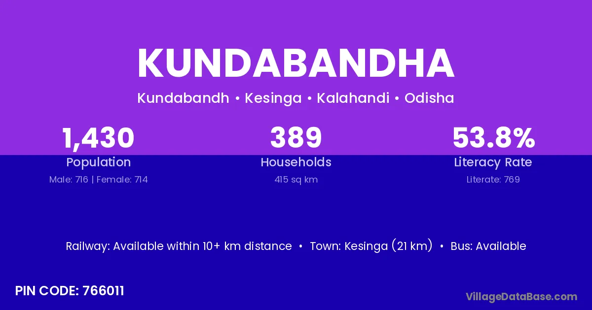 Kesinga (21 km) is the nearest town to Kundabandha village for major economic activities and is located approximately 21 km away.