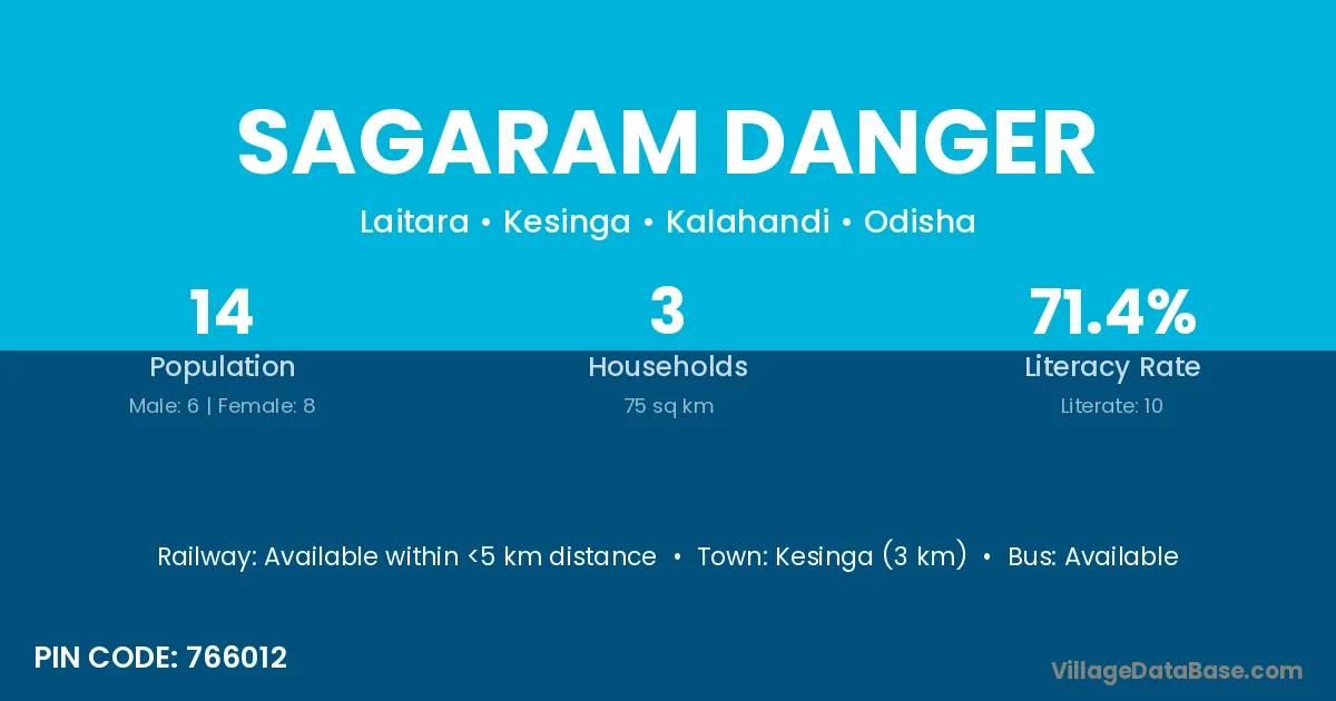 Kesinga (3 km) is the nearest town to Sagaram Danger village for major economic activities and is located approximately 3 km away.