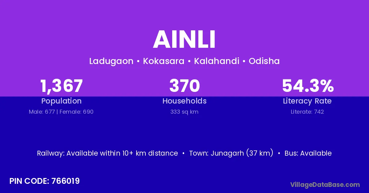 Junagarh (37 km) is the nearest town to Ainli village for major economic activities and is located approximately 37 km away.