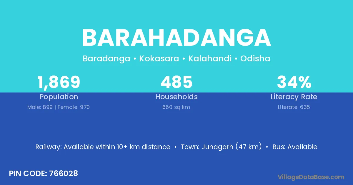 Junagarh (47 km) is the nearest town to Barahadanga village for major economic activities and is located approximately 47 km away.