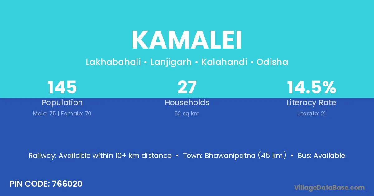 Bhawanipatna (45 km) is the nearest town to Kamalei village for major economic activities and is located approximately 45 km away.