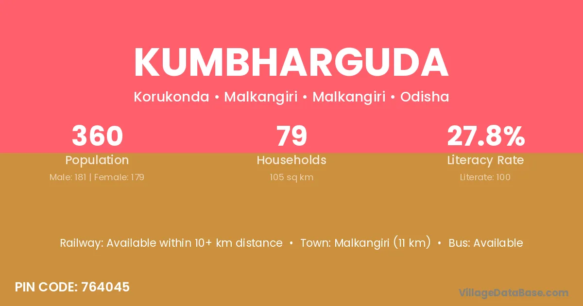 Bhawanipatna (40 km) is the nearest town to Kumbharguda village for major economic activities and is located approximately 40 km away.