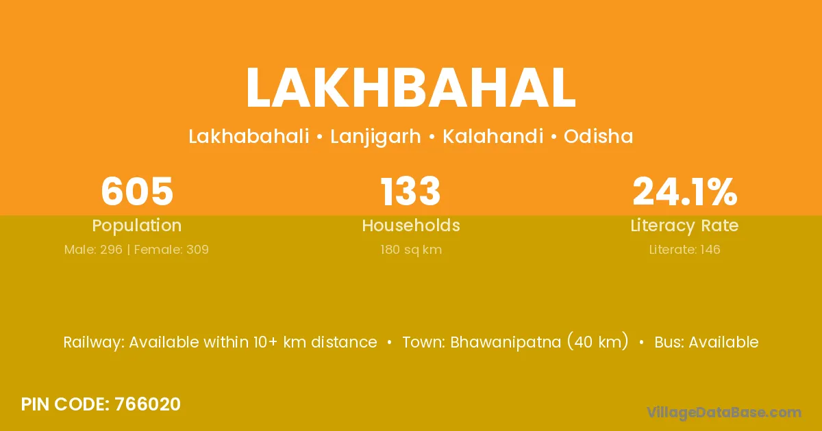 Bhawanipatna (40 km) is the nearest town to Lakhbahal village for major economic activities and is located approximately 40 km away.