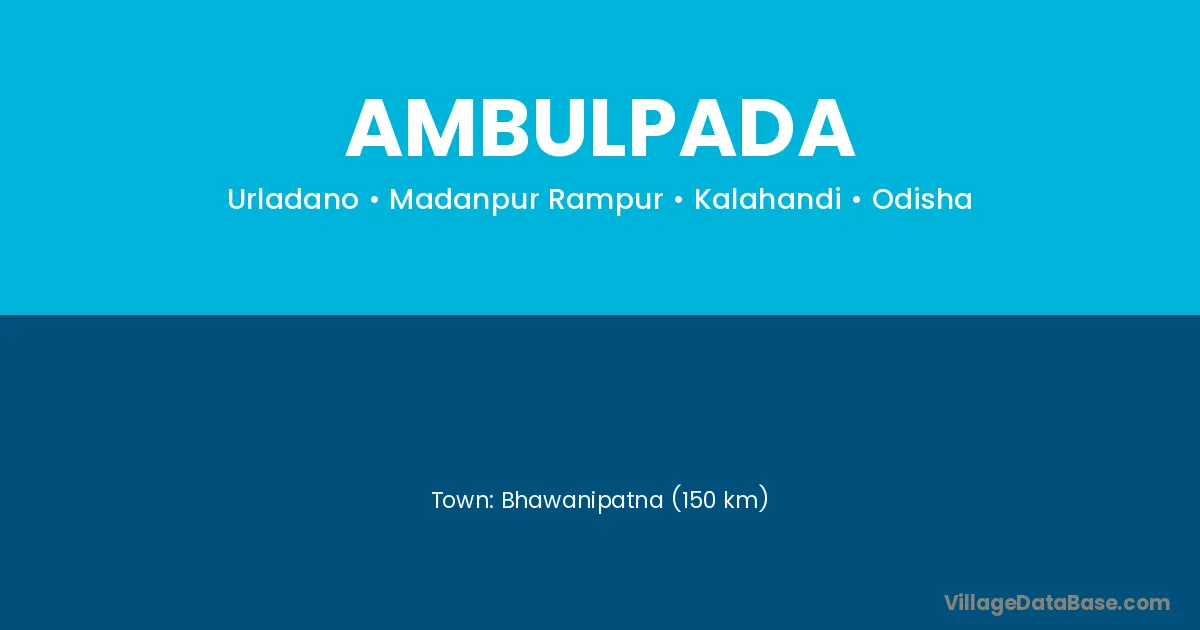 Bhawanipatna (150 km) is the nearest town to Ambulpada village for major economic activities and is located approximately 150 km away.