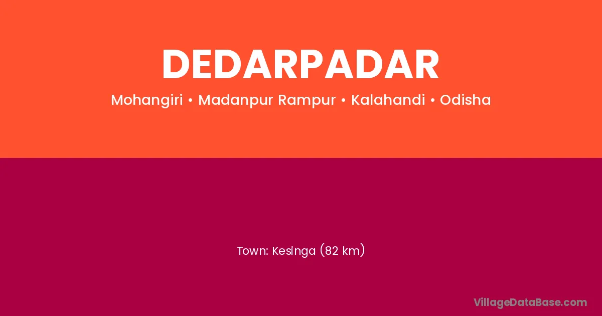 Kesinga (82 km) is the nearest town to Dedarpadar village for major economic activities and is located approximately 82 km away.