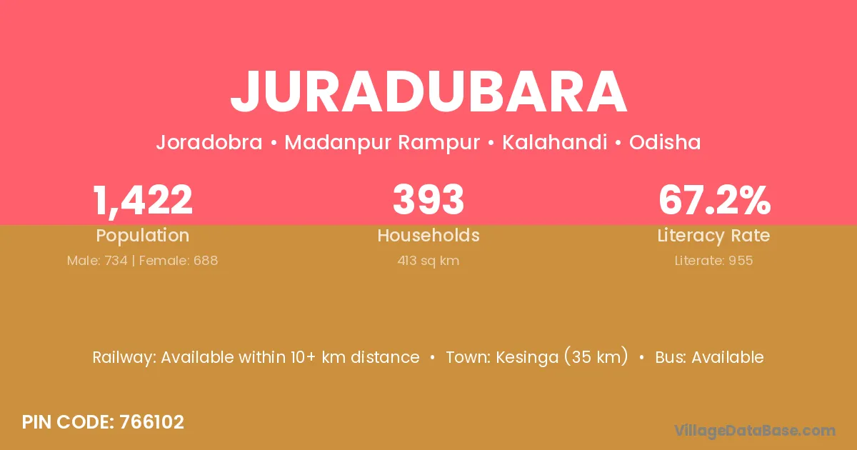 Kesinga (35 km) is the nearest town to Juradubara village for major economic activities and is located approximately 35 km away.