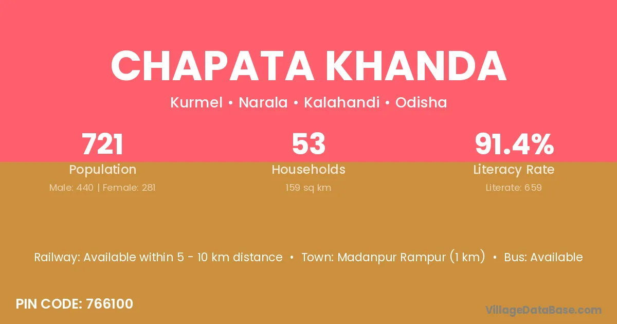 Chapata Khanda village has a total population of 721 people, of which 440 are males and 281 are females.