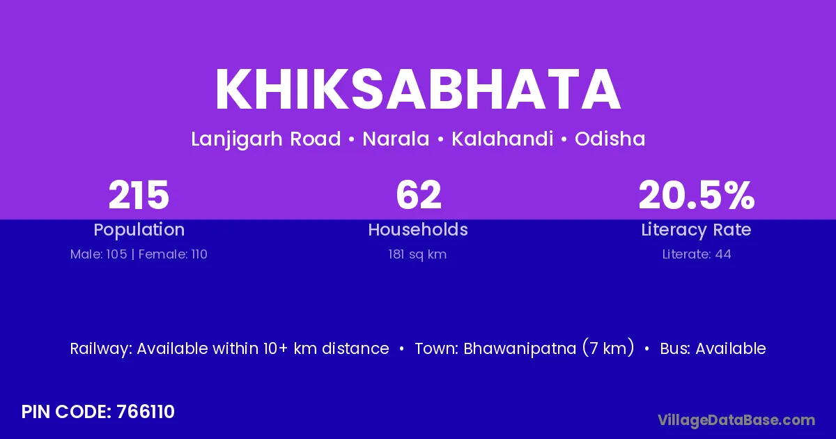 Bhawanipatna (7 km) is the nearest town to Khiksabhata village for major economic activities and is located approximately 7 km away.