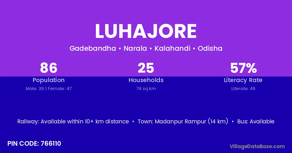 Madanpur Rampur (14 km) is the nearest town to Luhajore village for major economic activities and is located approximately 14 km away.
