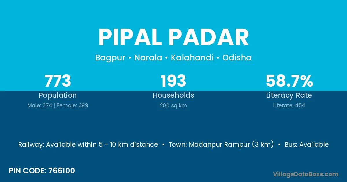 Madanpur Rampur (3 km) is the nearest town to Pipal Padar village for major economic activities and is located approximately 3 km away.
