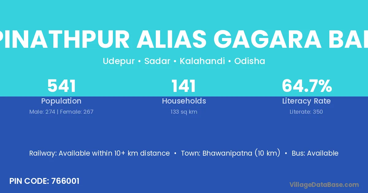 Bhawanipatna (10 km) is the nearest town to Gopinathpur Alias Gagara Bahali village for major economic activities and is located approximately 10 km away.