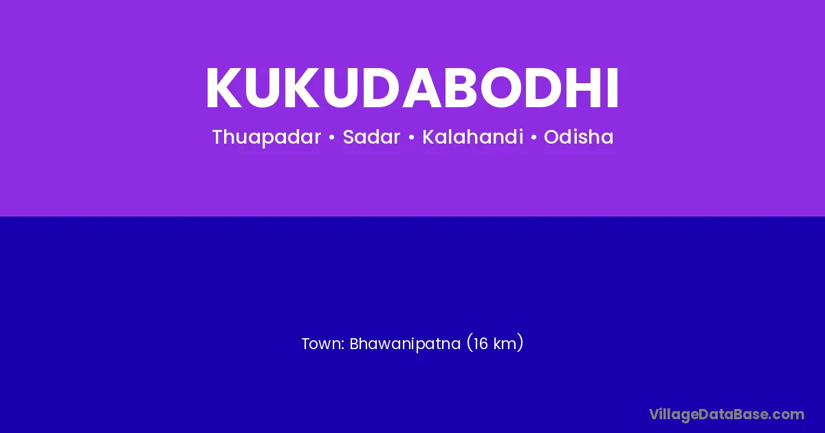 Kukudabodhi village is located in the Sadar Tehsil of the Kalahandi district in Odisha .