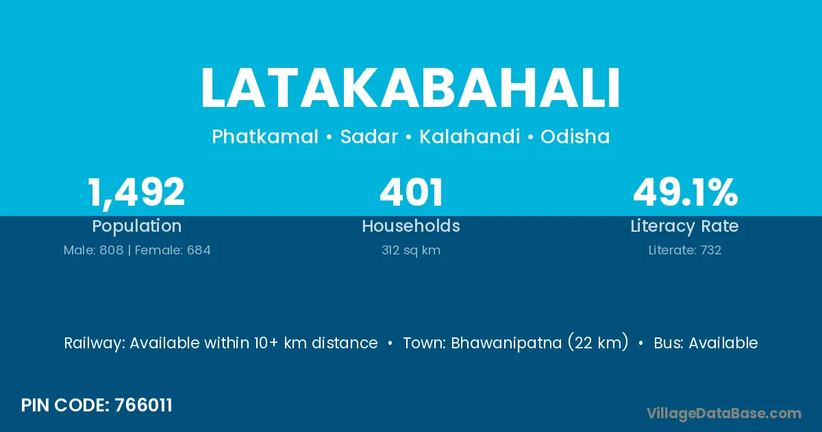 Bhawanipatna (22 km) is the nearest town to Latakabahali village for major economic activities and is located approximately 22 km away.