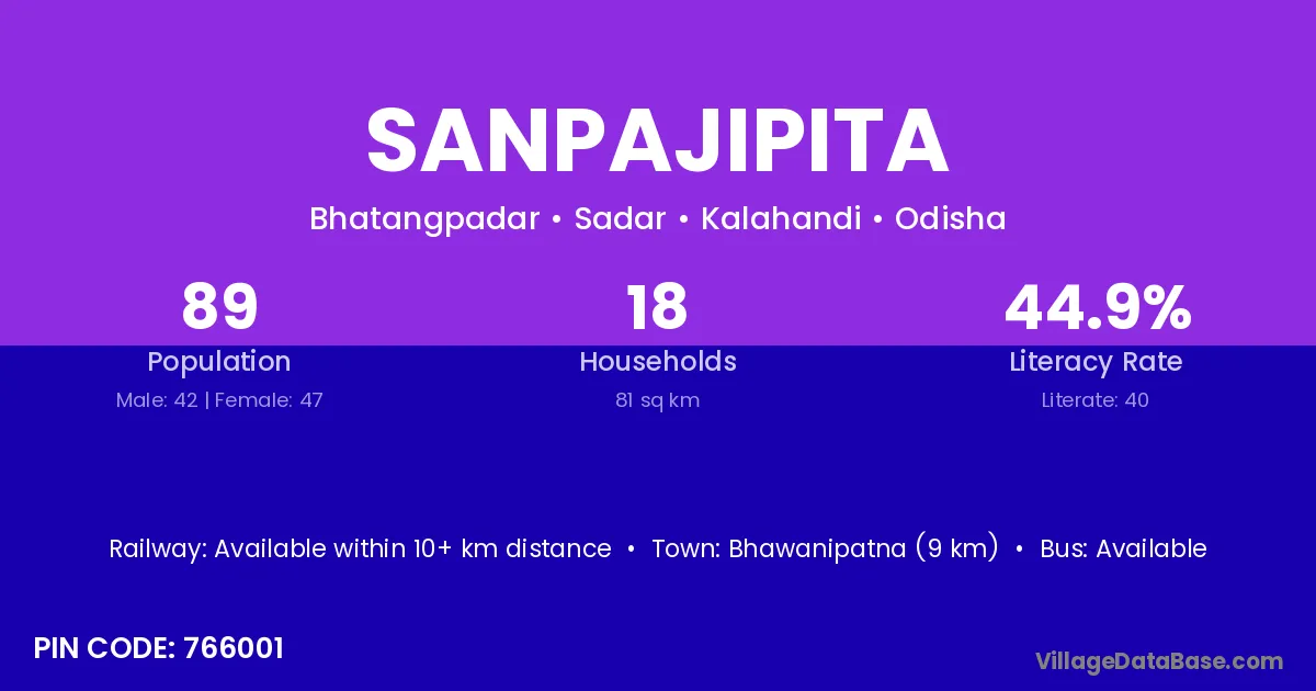 Bhawanipatna (9 km) is the nearest town to Sanpajipita village for major economic activities and is located approximately 9 km away.