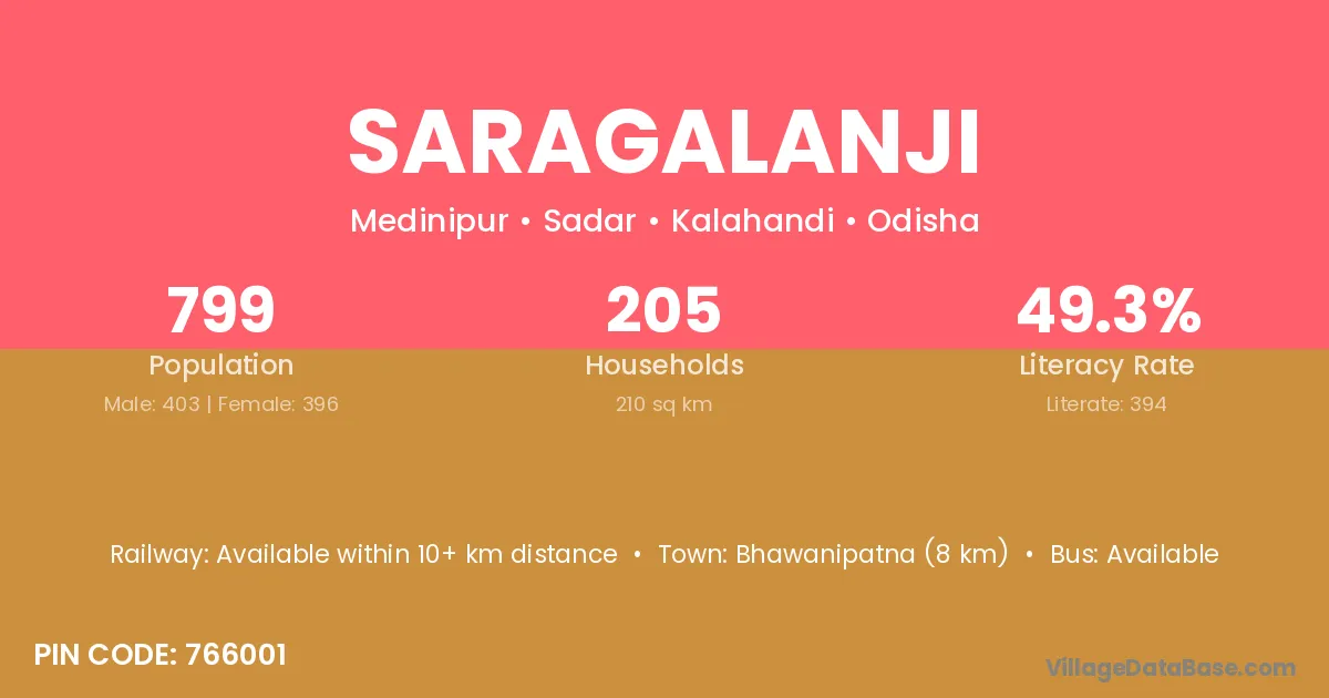 Bhawanipatna (8 km) is the nearest town to Saragalanji village for major economic activities and is located approximately 8 km away.