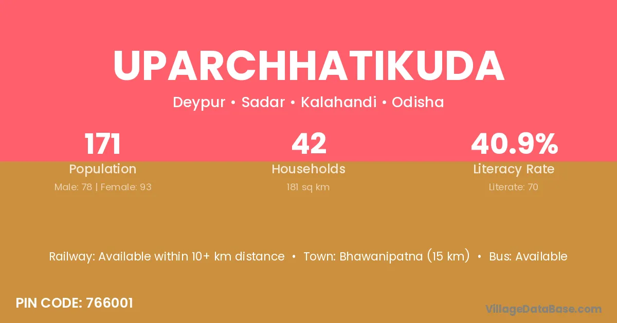 Bhawanipatna (15 km) is the nearest town to Uparchhatikuda village for major economic activities and is located approximately 15 km away.