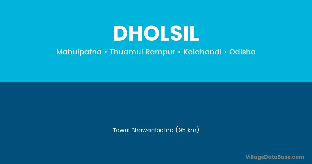 Bhawanipatna (95 km) is the nearest town to Dholsil village for major economic activities and is located approximately 95 km away.