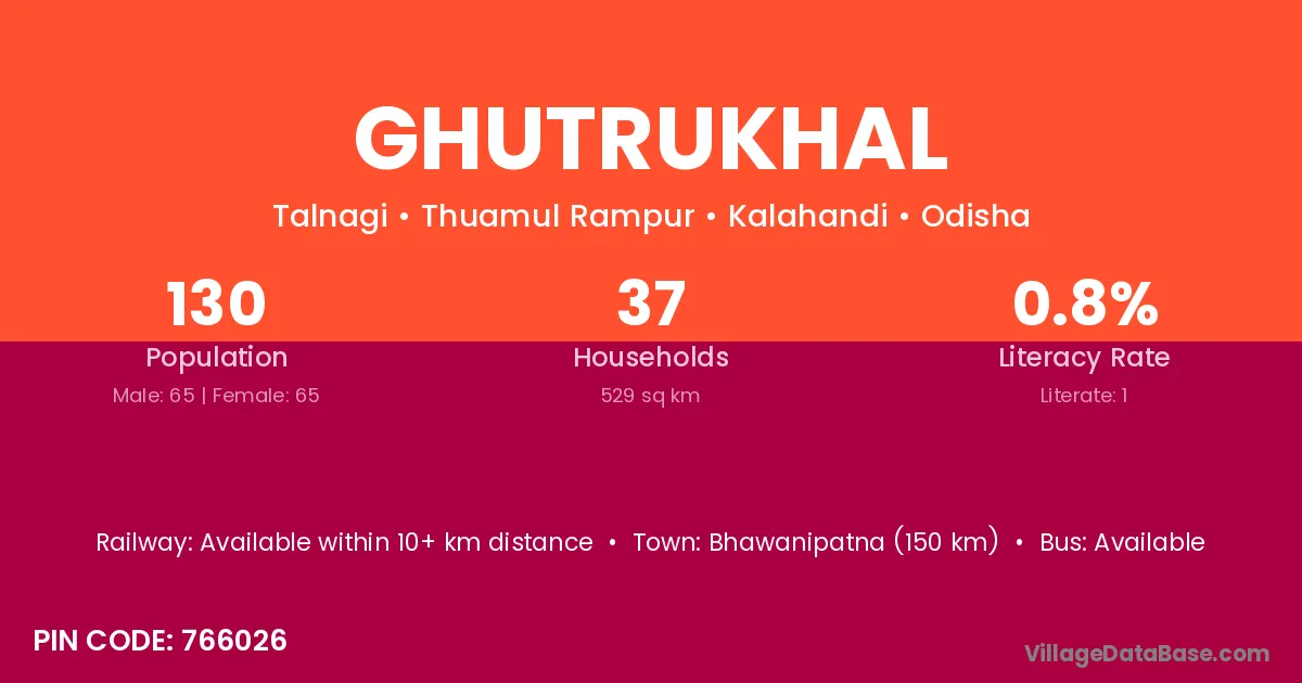 Bhawanipatna (150 km) is the nearest town to Ghutrukhal village for major economic activities and is located approximately 150 km away.