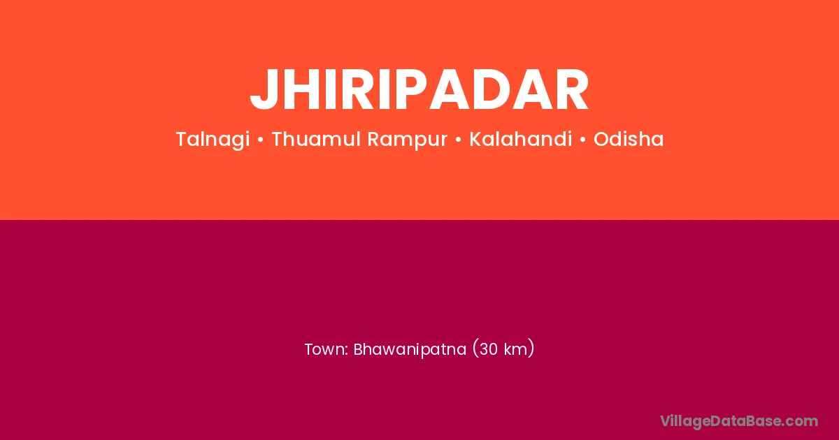 Bhawanipatna (30 km) is the nearest town to Jhiripadar village for major economic activities and is located approximately 30 km away.