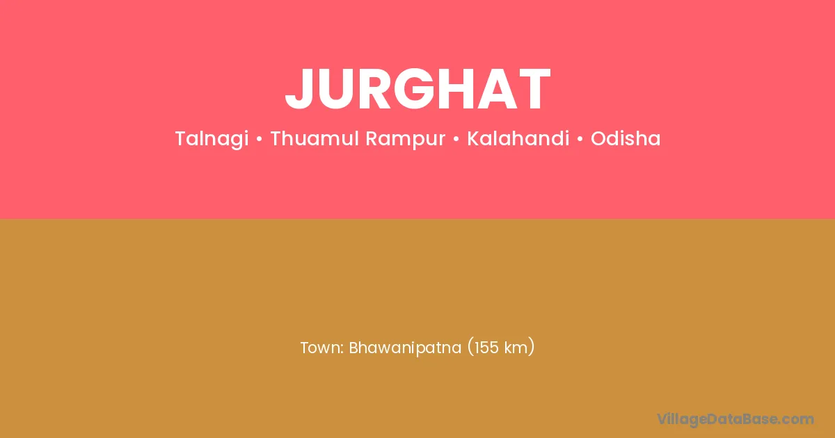 Bhawanipatna (155 km) is the nearest town to Jurghat village for major economic activities and is located approximately 155 km away.