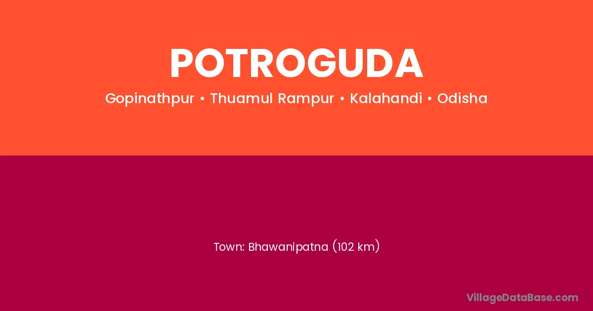 Bhawanipatna (102 km) is the nearest town to Potroguda village for major economic activities and is located approximately 102 km away.