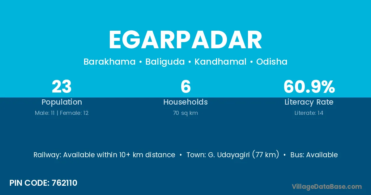 G. Udayagiri (77 km) is the nearest town to Egarpadar village for major economic activities and is located approximately 77 km away.