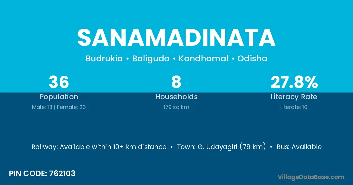 G. Udayagiri (79 km) is the nearest town to Sanamadinata village for major economic activities and is located approximately 79 km away.