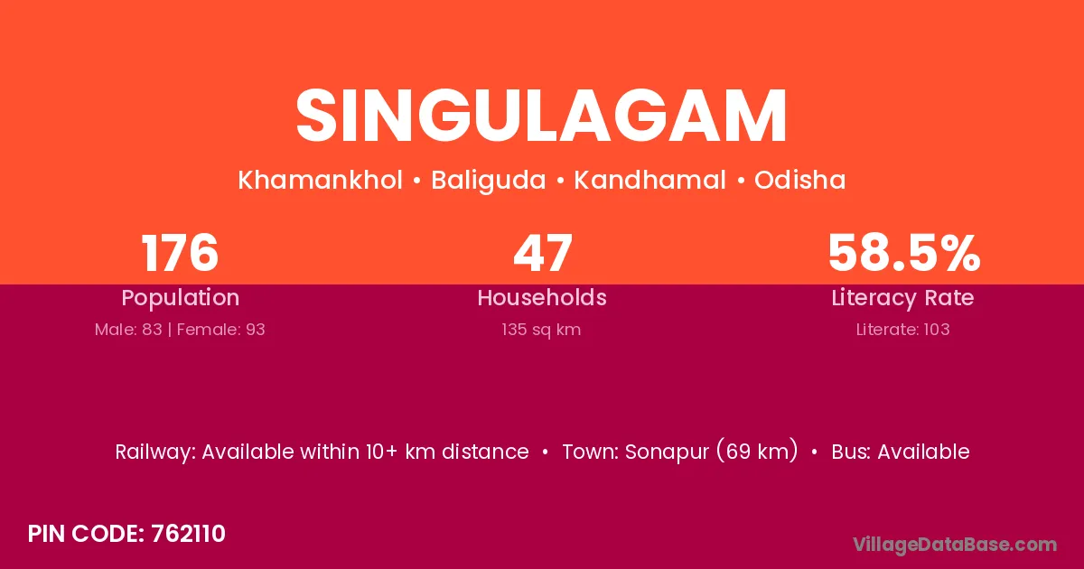 Singulagam village has a total population of 176 people, of which 83 are males and 93 are females.