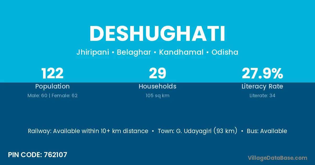 G. Udayagiri (93 km) is the nearest town to Deshughati village for major economic activities and is located approximately 93 km away.