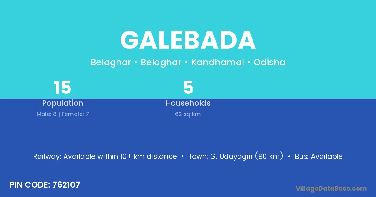 Galebada village has a total population of 15 people, of which 8 are males and 7 are females.