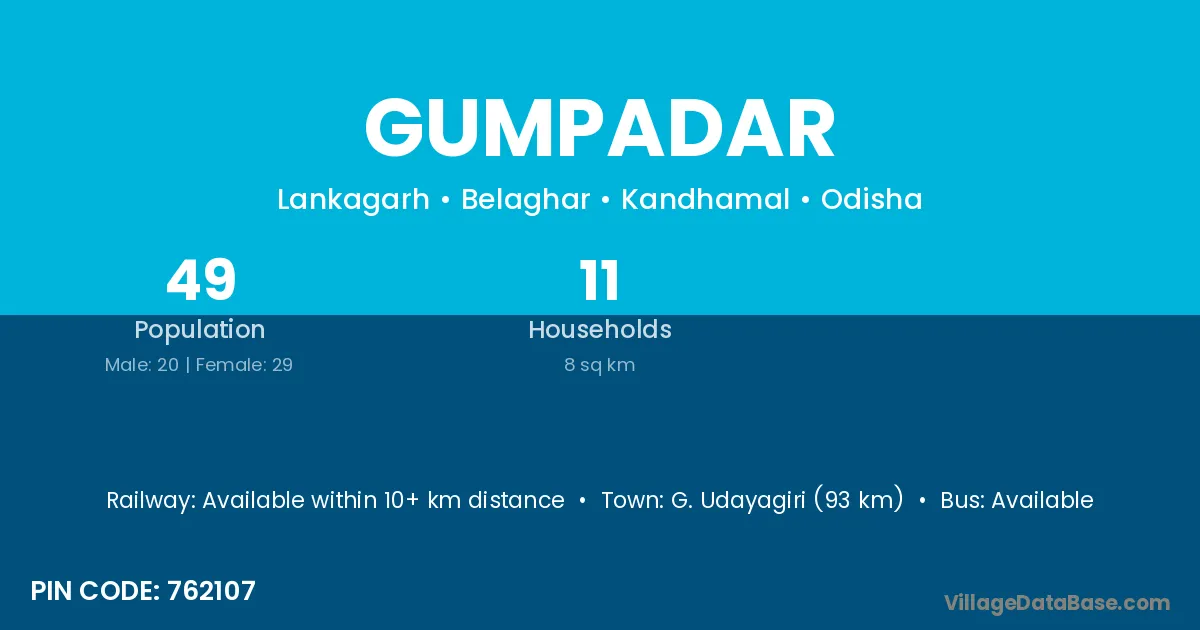G. Udayagiri (93 km) is the nearest town to Gumpadar village for major economic activities and is located approximately 93 km away.