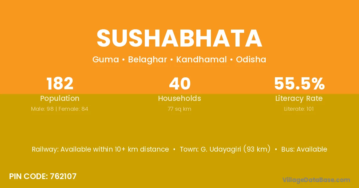 Sushabhata village has a total population of 182 people, of which 98 are males and 84 are females.