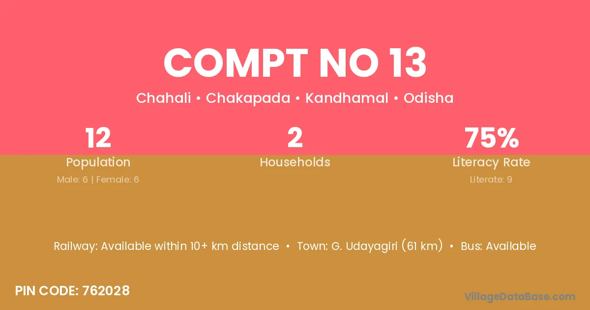 Compt No 13 village has a total population of 12 people, of which 6 are males and 6 are females.