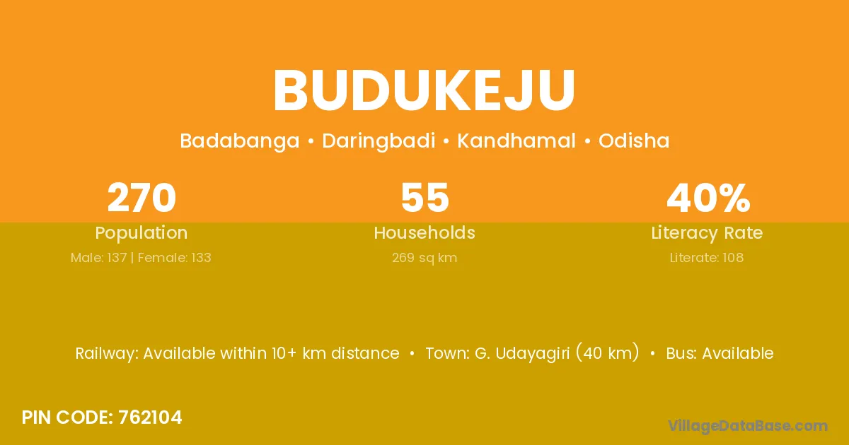 Budukeju village is located in the Daringbadi Tehsil of the Kandhamal district in Odisha .