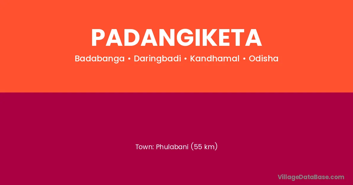 Phulabani (55 km) is the nearest town to Padangiketa village for major economic activities and is located approximately 55 km away.