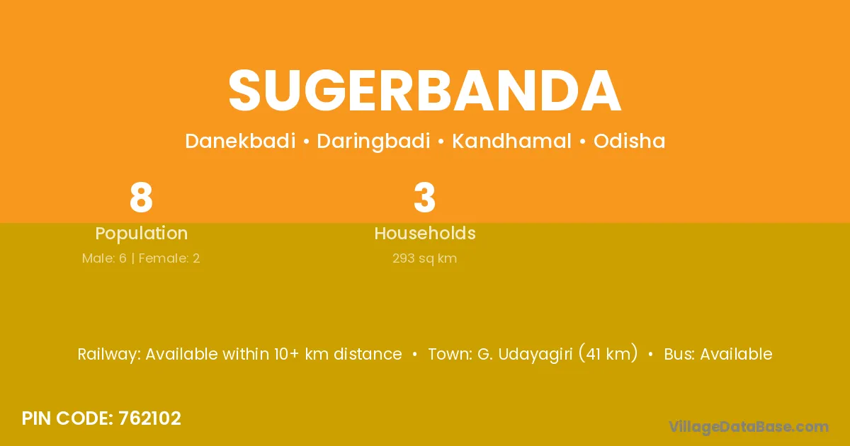 Sugerbanda village has a total population of 8 people, of which 6 are males and 2 are females.