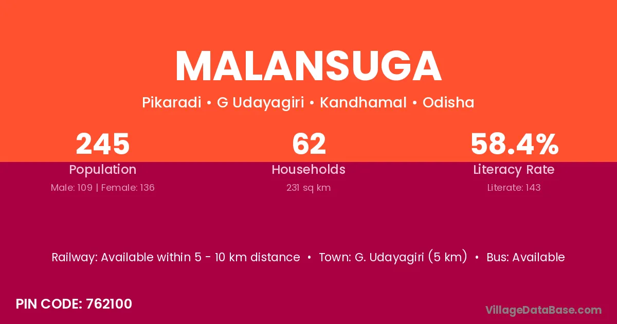 G. Udayagiri (5 km) is the nearest town to Malansuga village for major economic activities and is located approximately 5 km away.