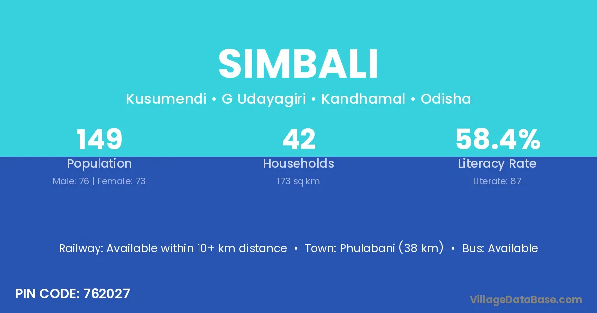 Phulabani (38 km) is the nearest town to Simbali village for major economic activities and is located approximately 38 km away.