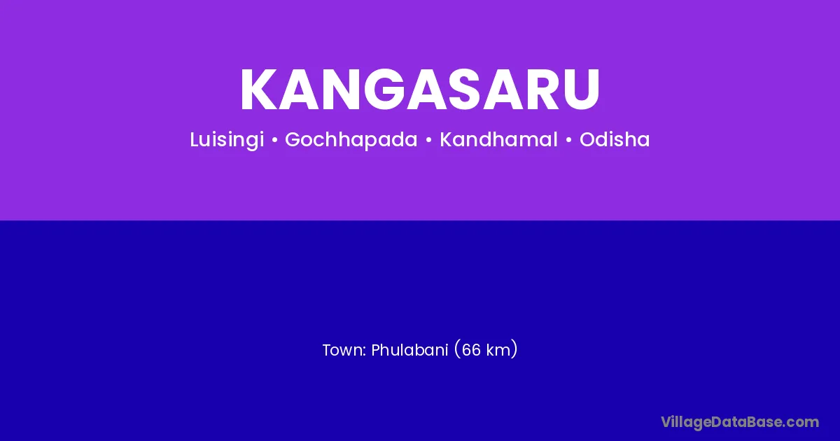 Phulabani (66 km) is the nearest town to Kangasaru village for major economic activities and is located approximately 66 km away.