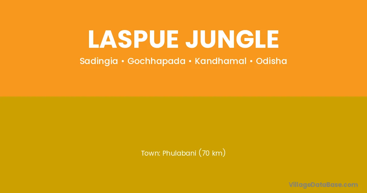 Phulabani (70 km) is the nearest town to Laspue Jungle village for major economic activities and is located approximately 70 km away.